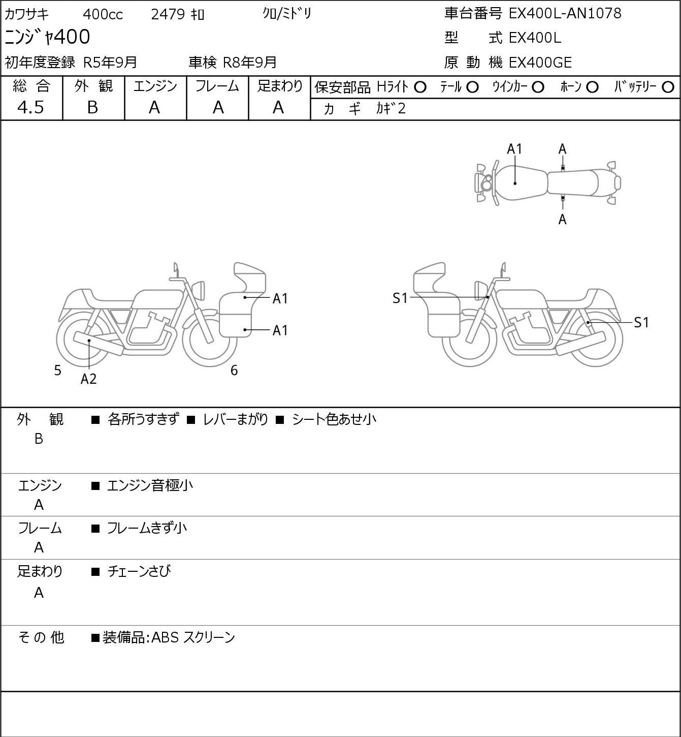 | Номер рамы: | EX400L-AN1078 |